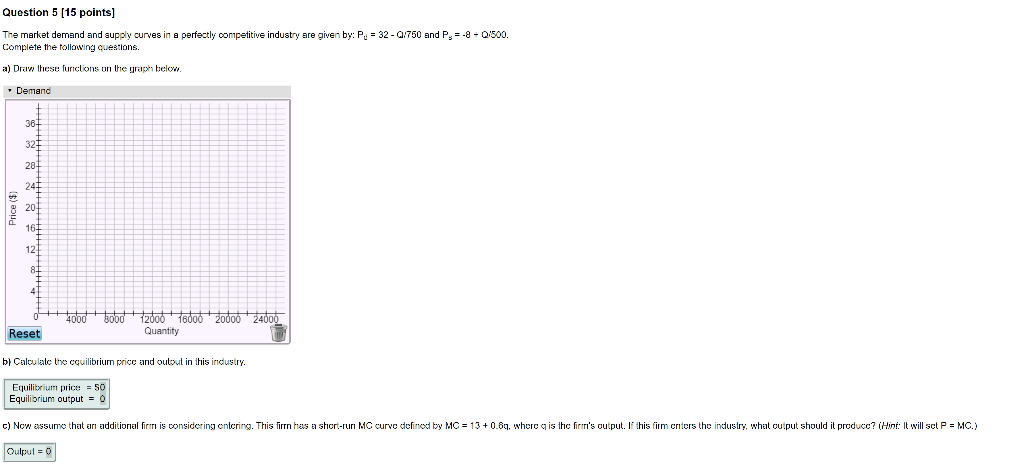Solved Question 5 15 Points The Market Demand And Supply Chegg Com